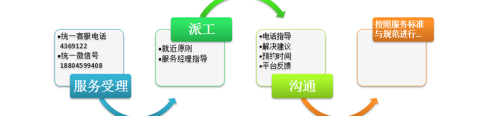 7、統一派工平臺由統一受理電話、微信報修號碼、客服人員組成,代表公司的統一受理與調度。
