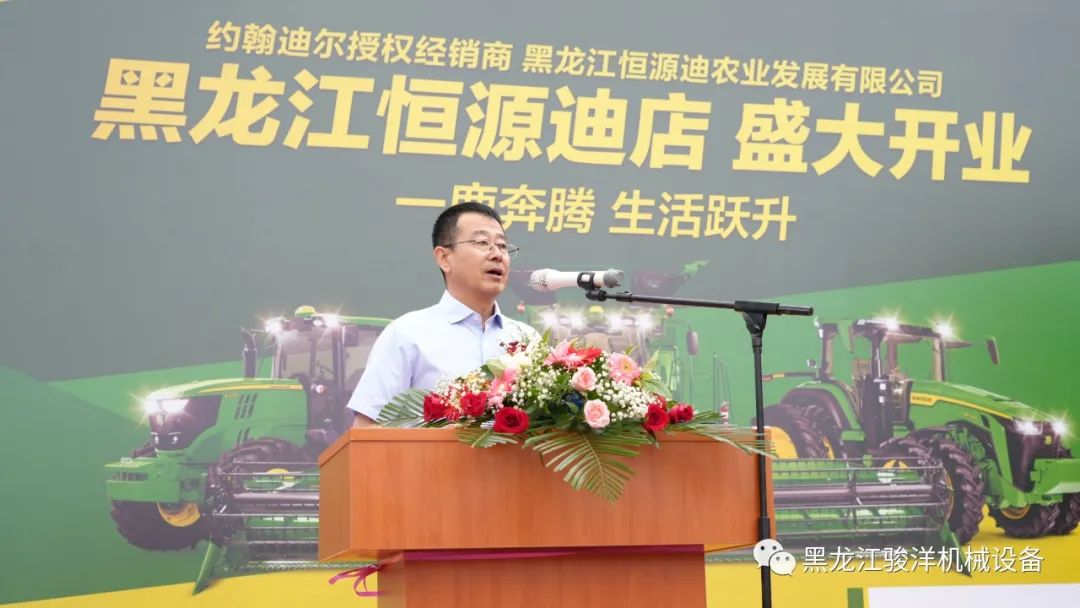黑龍江恒源迪農業發展有限公司總經理杜立志發表了開場致辭(下圖)。他表示,作為迪爾授權經銷商,恒源迪農業將不負約翰迪爾公司和用戶朋友的信任與期待,砥礪前行、全心全力的將迪爾品牌的核心價值觀“誠實、優質、守信、創新”發揚光大。公司有著完備的市場推廣、售后服務、配件供應體系和經驗,相信會給用戶帶來更好的產品使用體驗,讓用戶創造更大收益,為黑龍江現代農業特別是農機現代化的發展添磚加瓦。